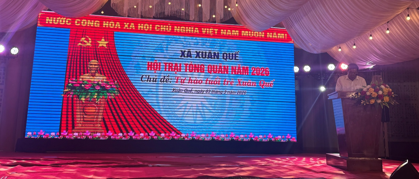Tối ngày ngày 3/3/2026 , trong không khí rộn ràng, phấn khởi của những ngày đầu xuân, xã Xuân Quế long trọng tổ chức Lễ khai mạc Hội trại tòng quân năm 2026 – ngày hội lớn tiễn đưa thanh niên ưu tú lên đường thực hiện nghĩa vụ thiêng liêng với Tổ quốc.