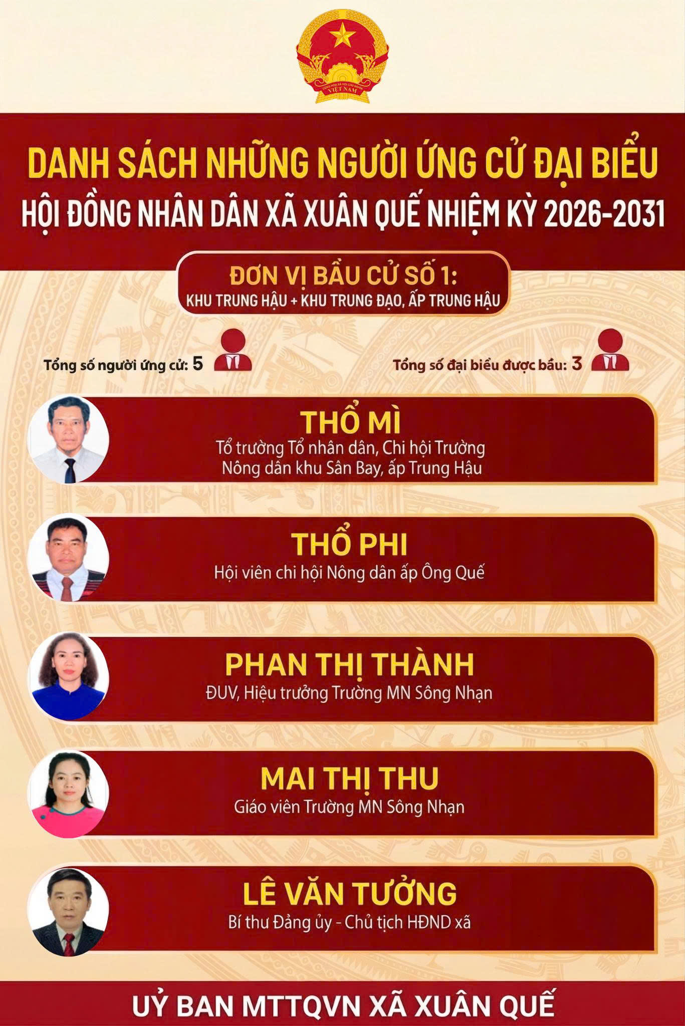 DANH SÁCH CỨNG CỬ VIÊN ĐẠI BIỂU HĐND XÃ XUÂN QUẾ TẠI CÁC ĐƠN VỊ BẦU CỬ