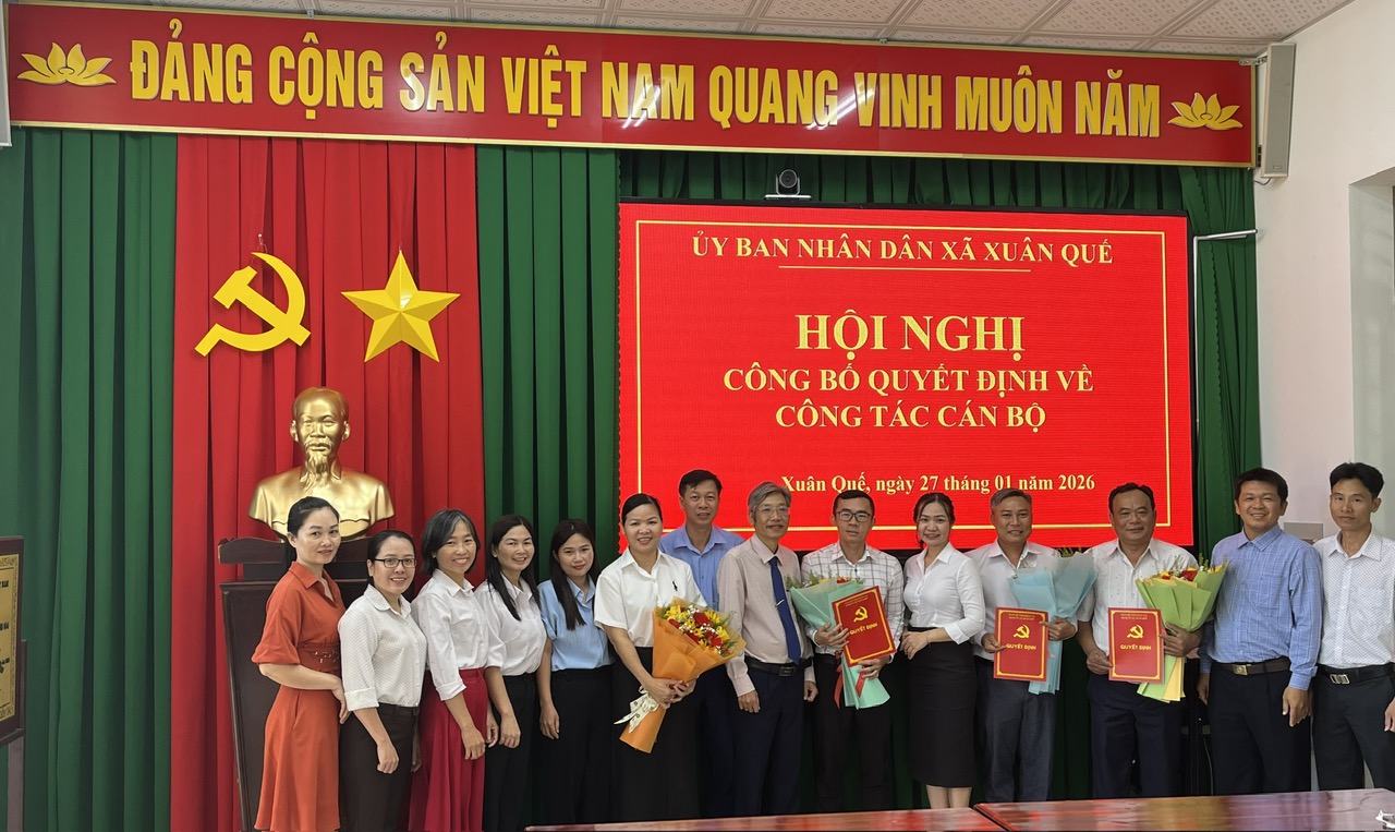 Sáng ngày 27/01/2026, tại Hội trường UBND xã Xuân Quế, UBND xã đã long trọng tổ chức Hội nghị công bố và trao Quyết định về công tác cán bộ.